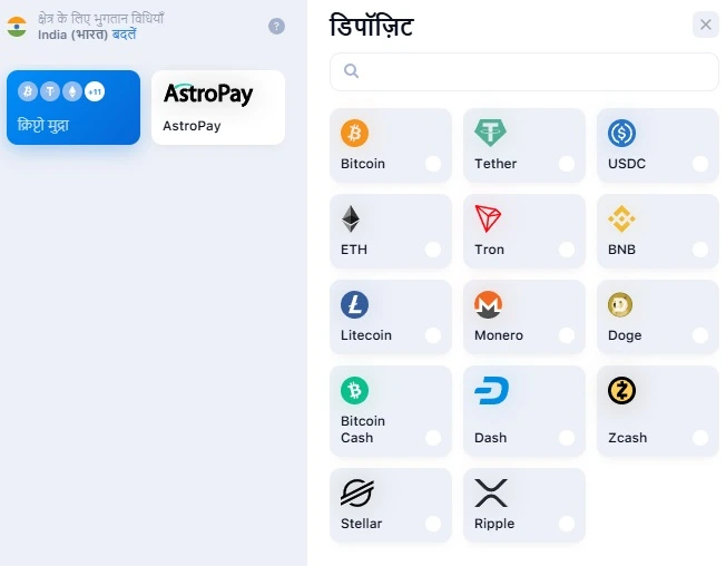 - एस्ट्रोपे: यह प्रीपेड कार्ड समाधान हमारे भुगतान सिस्टम में एकीकृत है, जो उपयोगकर्ता की विविध प्राथमिकताओं को पूरा करता है।